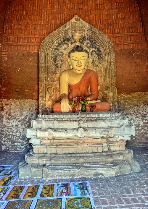 | ▲2018年 内部の仏陀像 床にはお土産の絵が陳列されている |